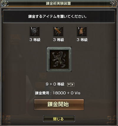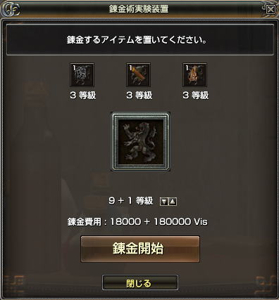 違う等級の素材でも(等級)と記載があれば3個あれば錬金できますよ~(」´・ω・`)」